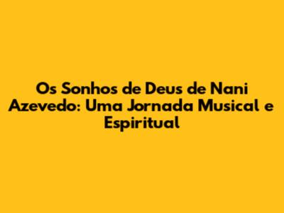 Essas músicas, assim como "Os Sonhos de Deus", são marcadas por letras inspiradoras e melodias que tocam o coração. Elas abordam temas como fé, esperança, adoração e gratidão a Deus. Nani Azevedo é conhecido por sua capacidade de transmitir mensagens de fé e esperança através de suas canções, e suas músicas são frequentemente utilizadas em momentos de oração, reflexão e adoração.