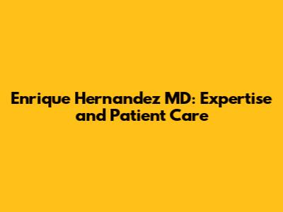 Enrique Hernandez MD: Expertise And Patient Care