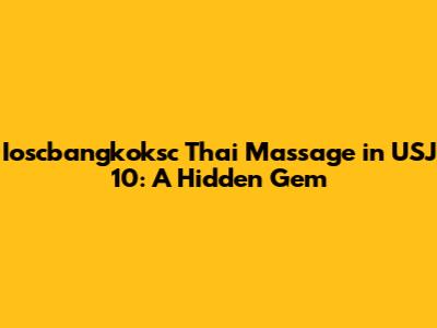 Ioscbangkoksc Thai Massage In USJ 10: A Hidden Gem