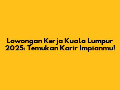 Lowongan Kerja Kuala Lumpur 2025: Temukan Karir Impianmu!
