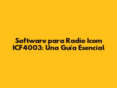 Software Para Icom ICF4003: Guía Esencial